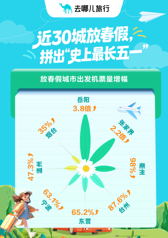 放春假城市启航机票销量暴涨。去哪儿旅行
