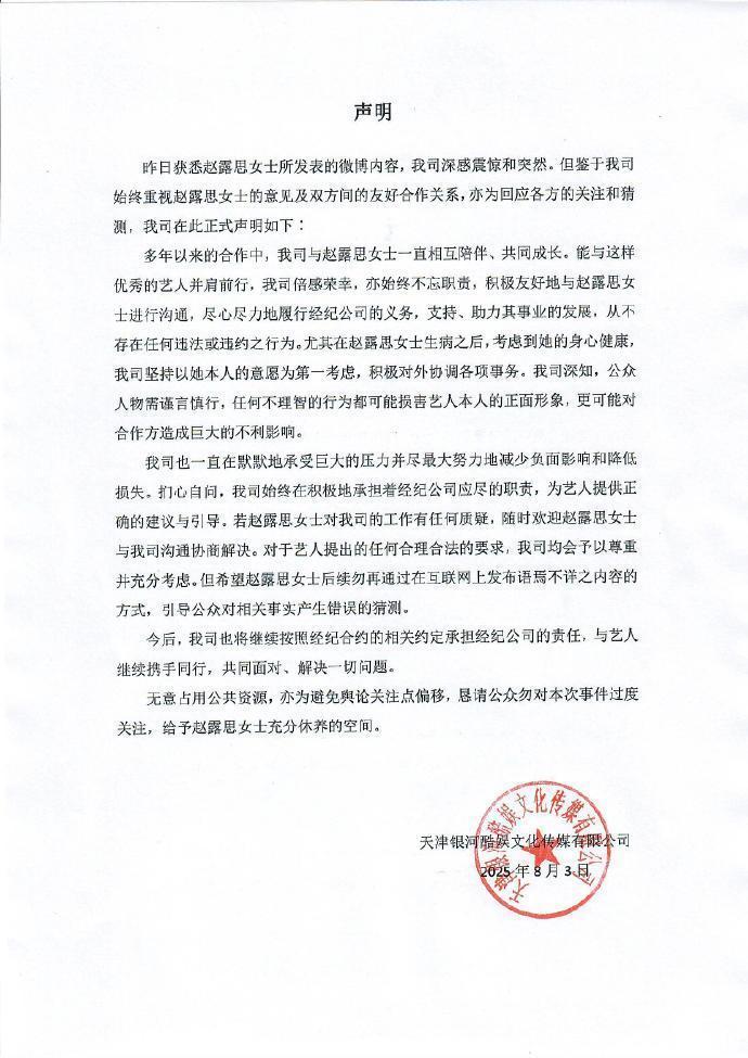 赵露想终于如故放下体面,细致开撕经纪公司星河酷娱传媒。
