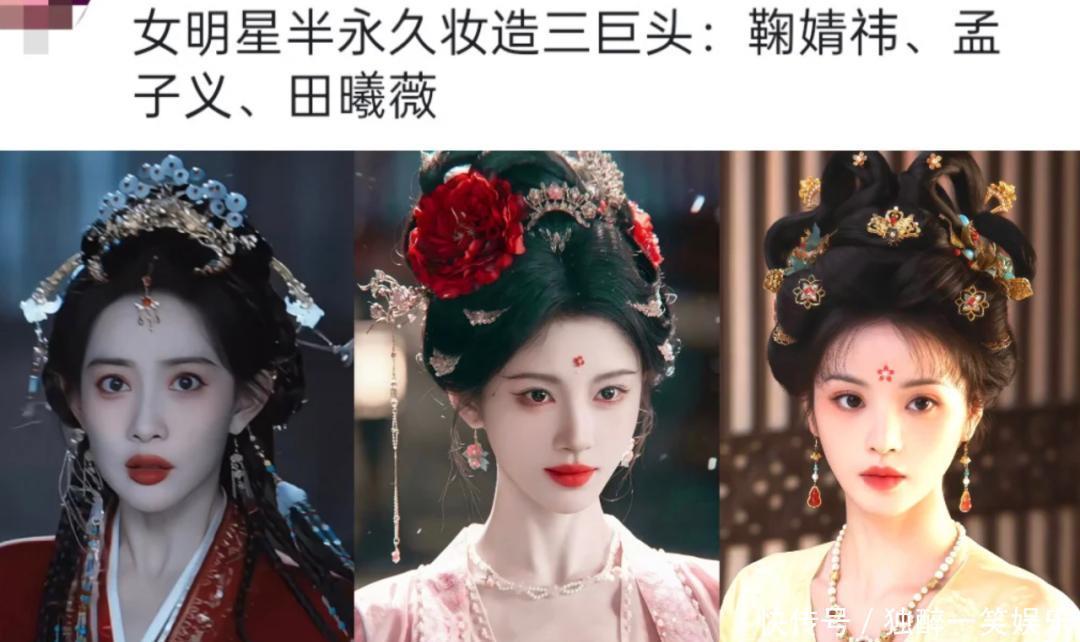 行动一番女主的孟子义,更是被推到风口浪尖之上,网友对比她最近几年的古偶妆造,回归出来了一个“公式”:大红唇、浓眼妆,白茫茫的脸。
