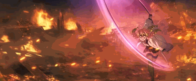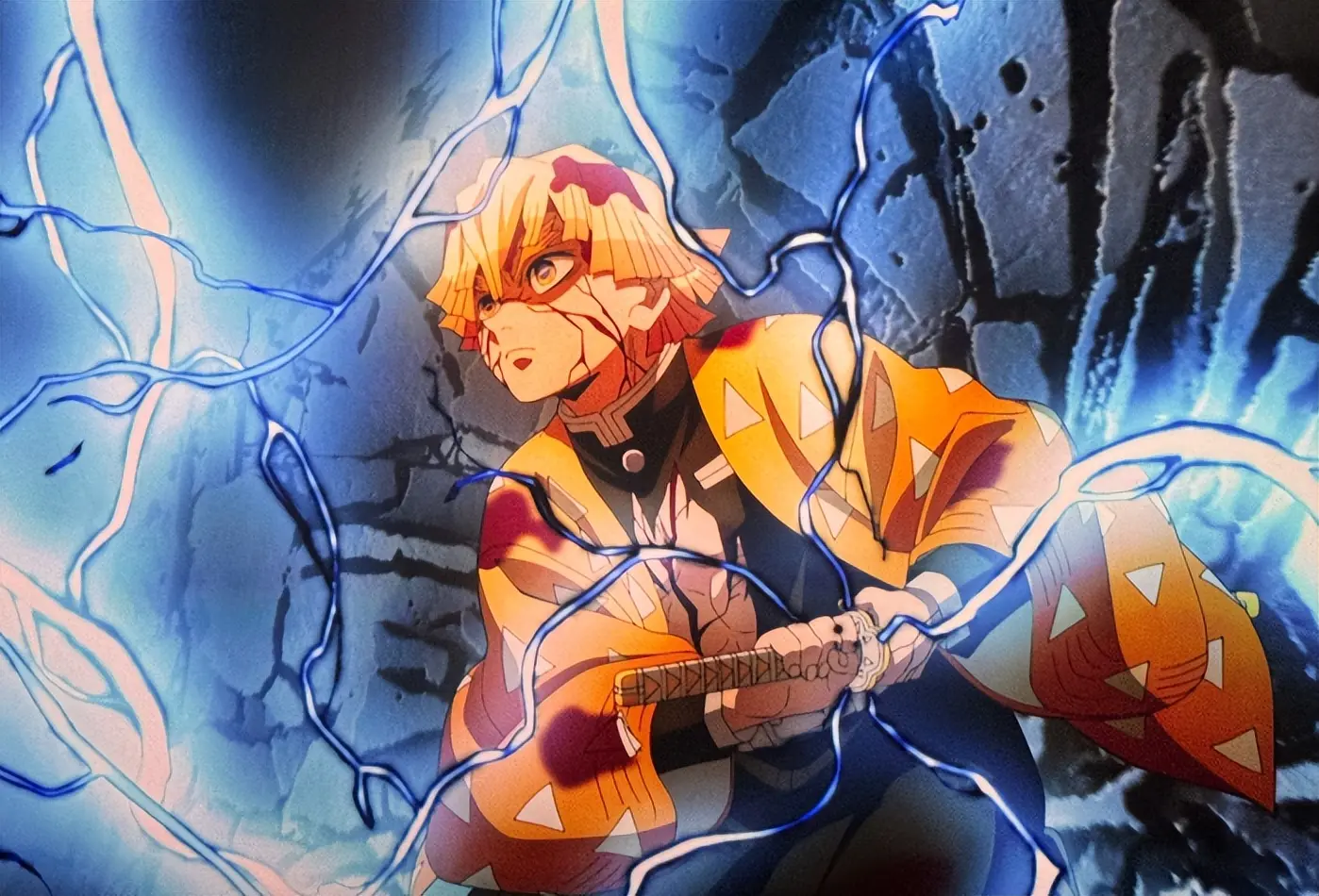临了我妻善逸灭狯岳,满屏雷电残渣,极其炫酷。