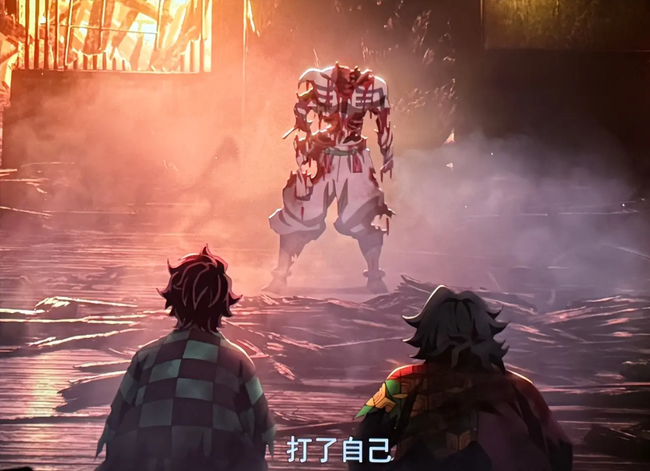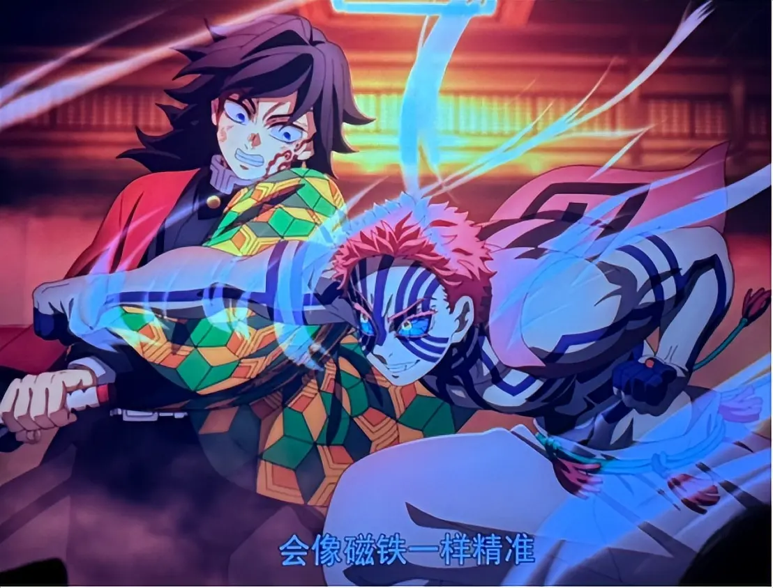 虽然,整部影片重中之重的桥段,是琦窝座1V2炭治郎和义勇。