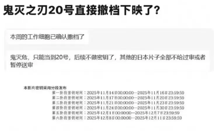 不外值得一提的是,如今方位不同,日本的电影也曾被范畴了,好像《鬼灭之刃》影版也将撤档下映。