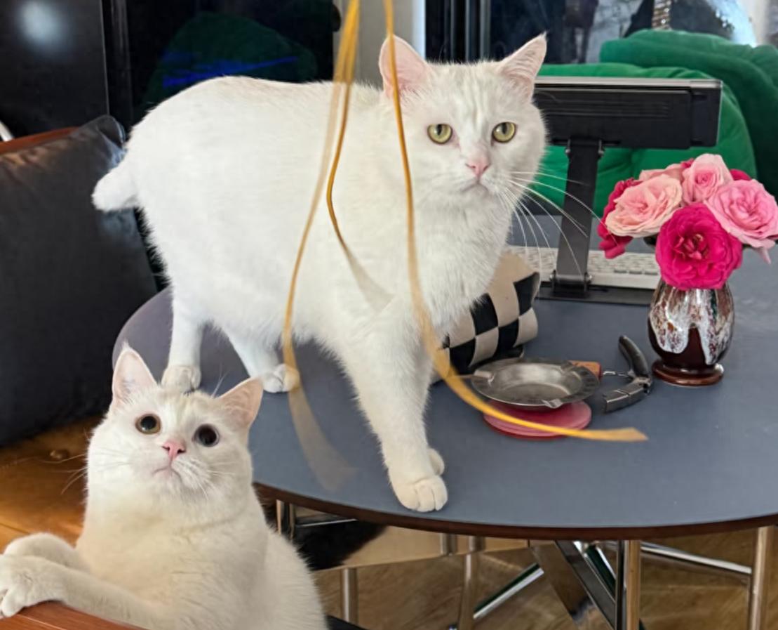 密斯姐养了两只白猫,大白和小白,它俩是双胞胎,每天全部玩耍,全部就寝,真实坐卧不离。