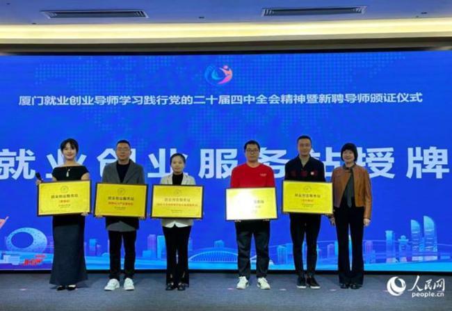在今日举行的颁证典礼上,厦门市东谈主社部门鉴别为新聘导师代表颁发聘书,并向新一批办事创业服务站授牌,以及为新组建的“导师服务团”授旗。责任主谈主员先容,跟着新一届导师队列的上岗,厦门市办事创业服务体系将迎来全新升级,“办事创业服务也细致从‘广袒护、普适化’向‘深援救、精确化’更动”。