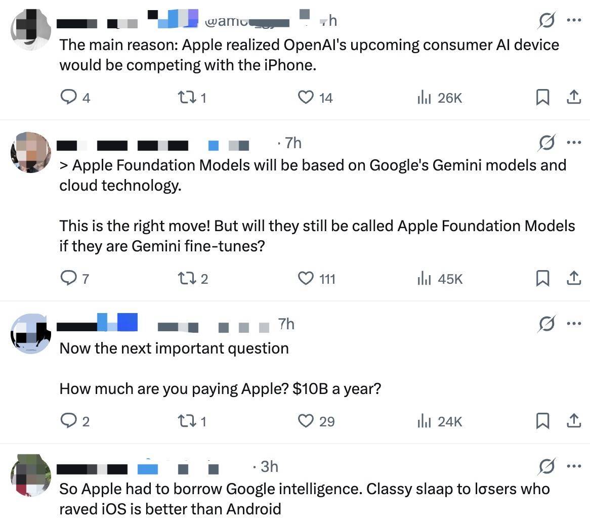 关于这场世纪牵手,弘大网友也各执一词。有网友以为“(配合)这是正确的举措”,但依然发出敏锐的发问:“如若他们是对Gemini模子的微调,还能叫苹果基础模子吗?”有东谈主直指:“这的确对那些吹捧iOS比安卓更好的失败者们的漂亮反击。”