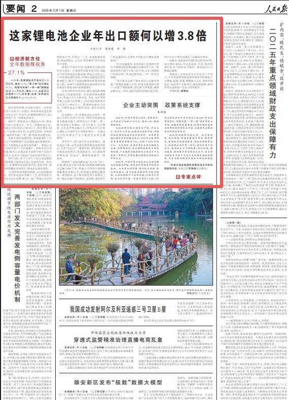 原标题:这家锂电板企业年出口额因何增3.8倍(经济新方向·全年数据微视角)
